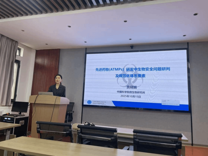 贾晓娟研究员长期深耕生物安全领域,牵头建成国内首批高等级生物安全实验室及新冠疫苗生产车间,构建29种高致病性病原操作技术体系,编制17项国家生物安全法规标准,此次报告聚焦ATMPs(细胞治疗、基因治疗等创新药物)研发中的核心安全问题。她指出,随着合成生物学、基因编辑等技术快速发展,ATMPs研发既面临传统病原微生物的操作风险,又需应对新技术(如CRISPR脱靶效应、病毒载体免疫反应)带来的不确定性,生物安全已成为创新药物从实验室走向临床的关键保障。