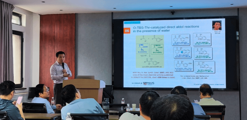 在随后的报告中,卢院士从手性催化剂骨架入手,深入浅出地介绍了不对称有机催化的发展历程、当前面临的核心挑战以及未来的发展方向。他重点阐述了其团队在优势不对称催化剂骨架及新型手性化合物构建等方面取得的系列创新性成果。卢教授通过生动的语言、丰富的案例和严谨的数据,将深奥的专业知识讲解得清晰透彻。在互动环节,现场师生踊跃提问,就不对称催化领域的问题与卢一新教授进行了深入交流。卢教授耐心细致、妙语连珠的解答,赢得了阵阵掌声。